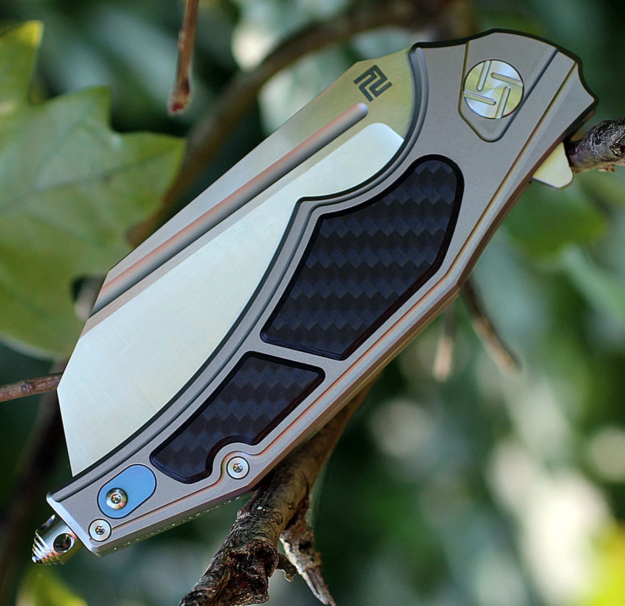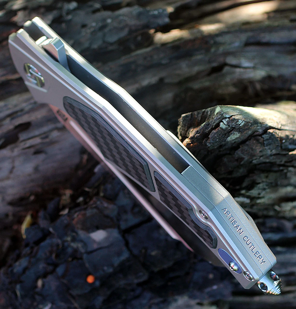 Artisan Apache ATZ1813GGYS, 3.82″ S35VN Plain Blade, Gray Titanium/Carbon Fiber Handle