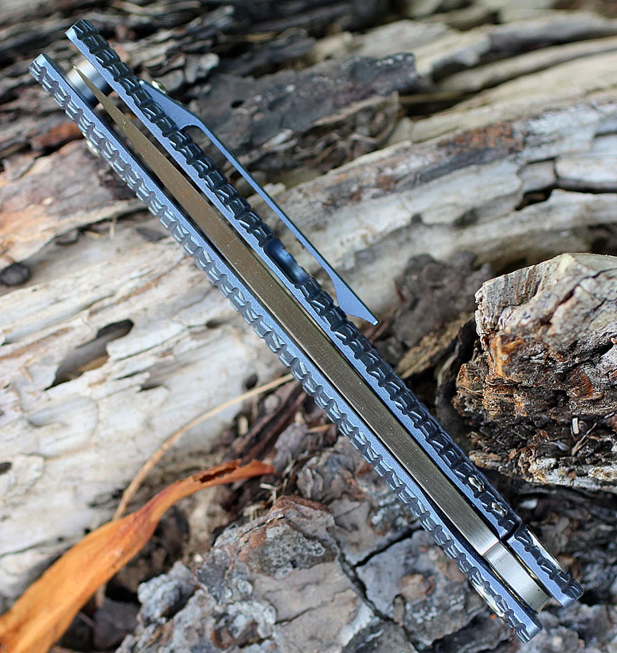 Artisan ATZ1805GBUS S Waistline, 4″ S35VN Plain Blade, Blue Titanium Handle
