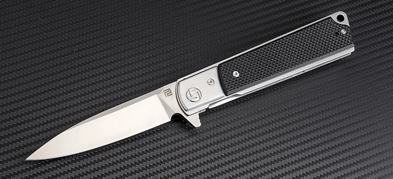 Artisan Classic ATZ1802PBKF, 3.94″ D2 Steel Plain Blade, Black G10 Handle