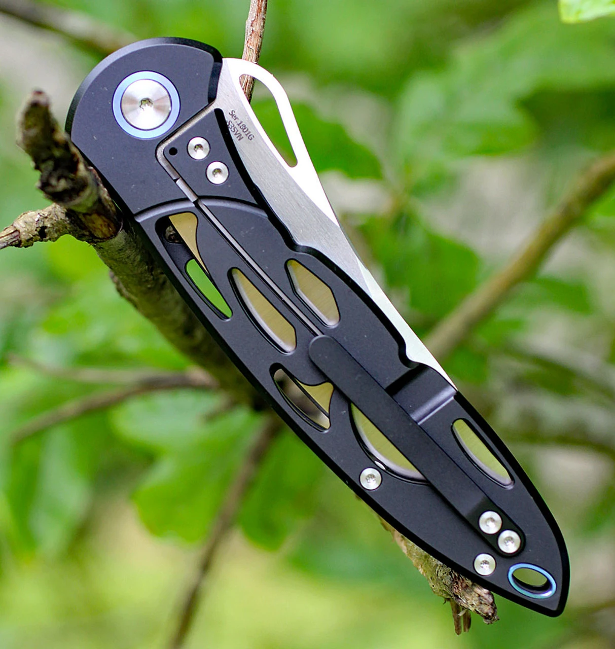 Artisan Dragonfly ATZ1801GBKS, 3.94″ S35VN Stainless Steel Plain Blade, Black TC4 Titanium Handle