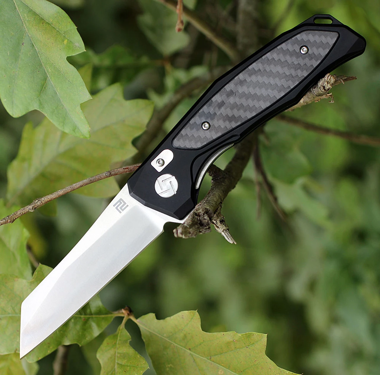 Artisan Falcon ATZ1809PBCF, 3.94″ D2 Plain Blade, Black Aluminum/Carbon Fiber Handle