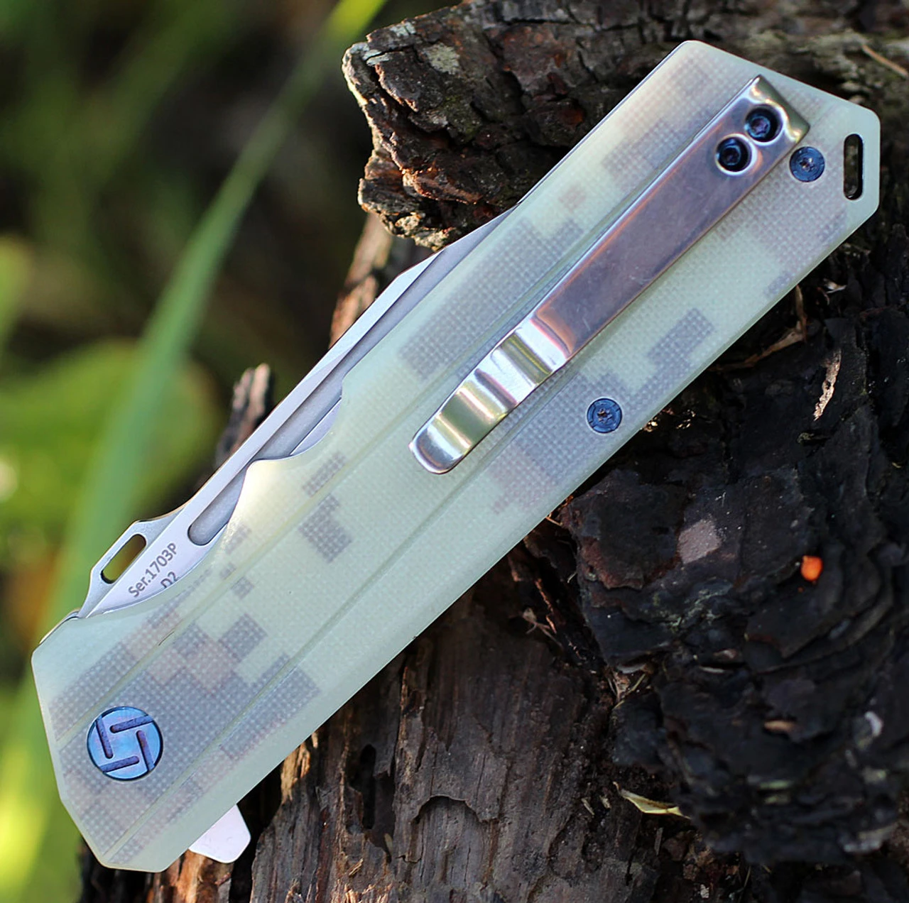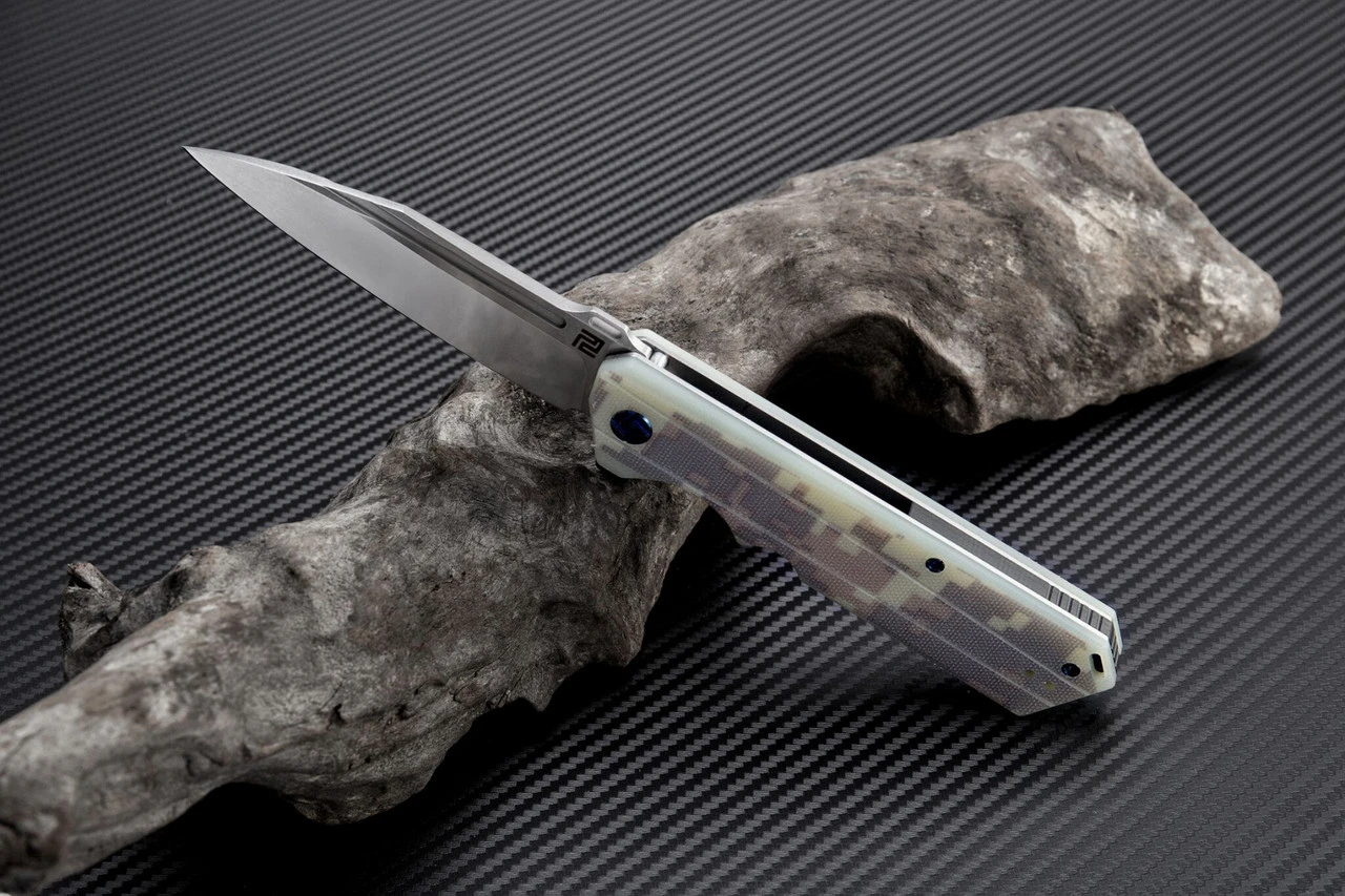Artisan Littoral ATZ1703PCG , 3.54 in. D2 Plain Blade, Camo G10 Handle
