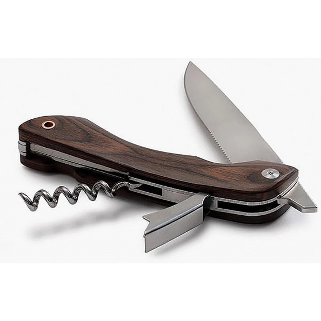A high-quality culinary knife with pocket knife practicality. The Folding Knife Set lets you enjoy your favorite foods from the patio to the picnic blanket. Its folding and locking stainless steel blade provide a safely packable cutting edge, and the hardwood handle and elegant design make it handsome enough for any setting. Set of 2.