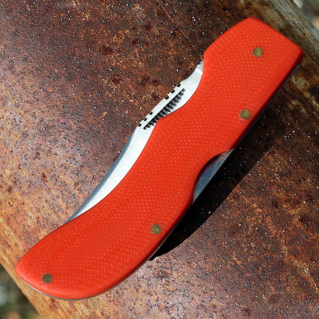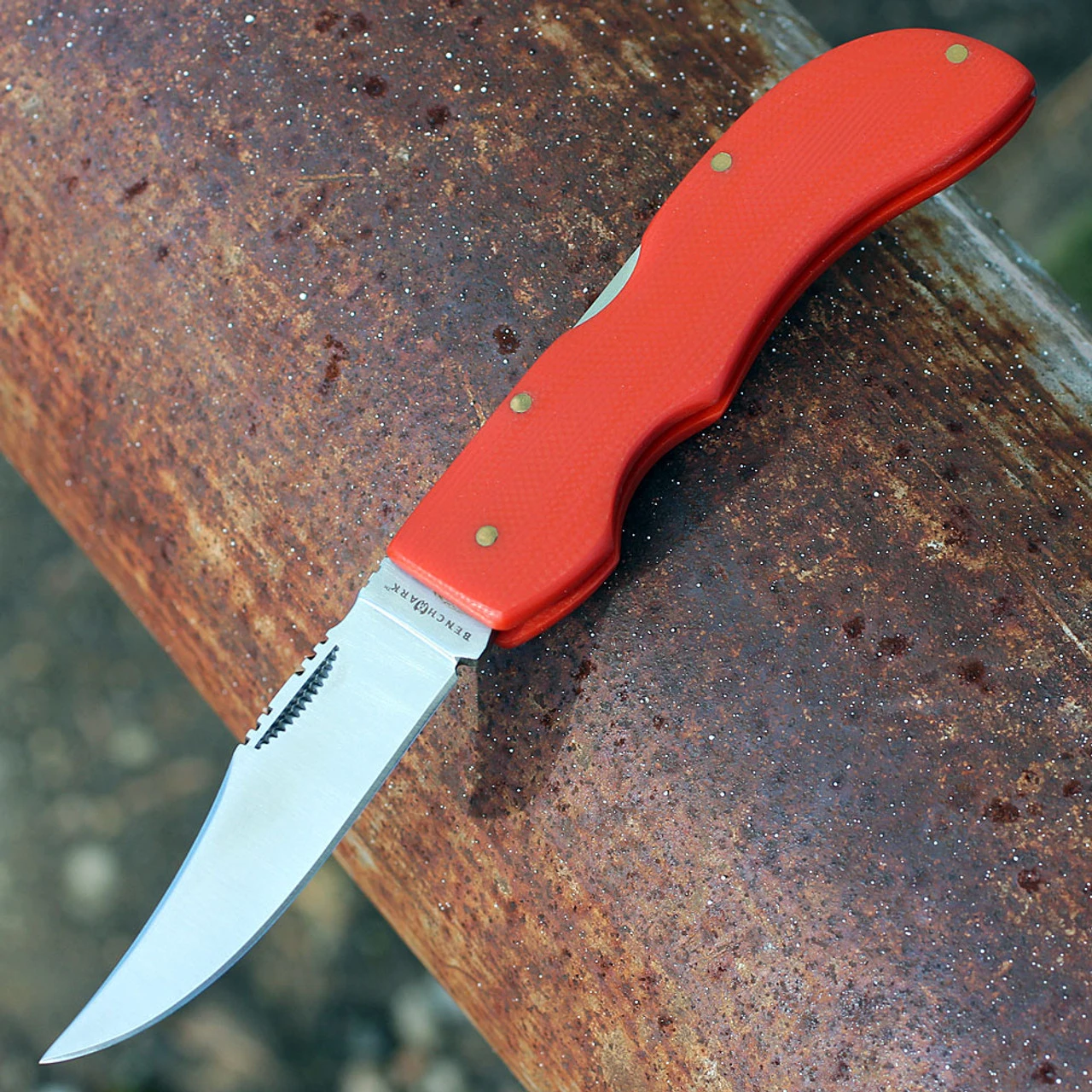 Benchmark Folding Knife ( BMK009) 2.6″ Stanless Steel PlainClip Point blade, Orange Micrata Handle