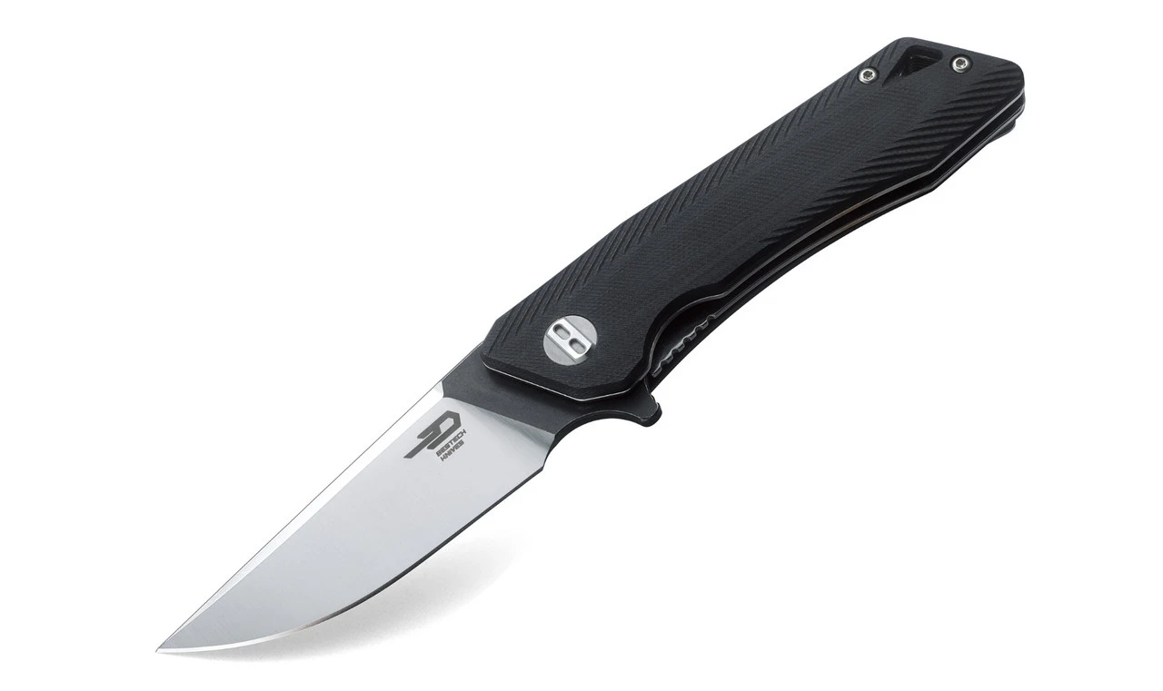 Bestech BTKG10A1 Thron, 3.0″ Sandvick 12C27 Satin Plain Blade, Black G-10 Handle
