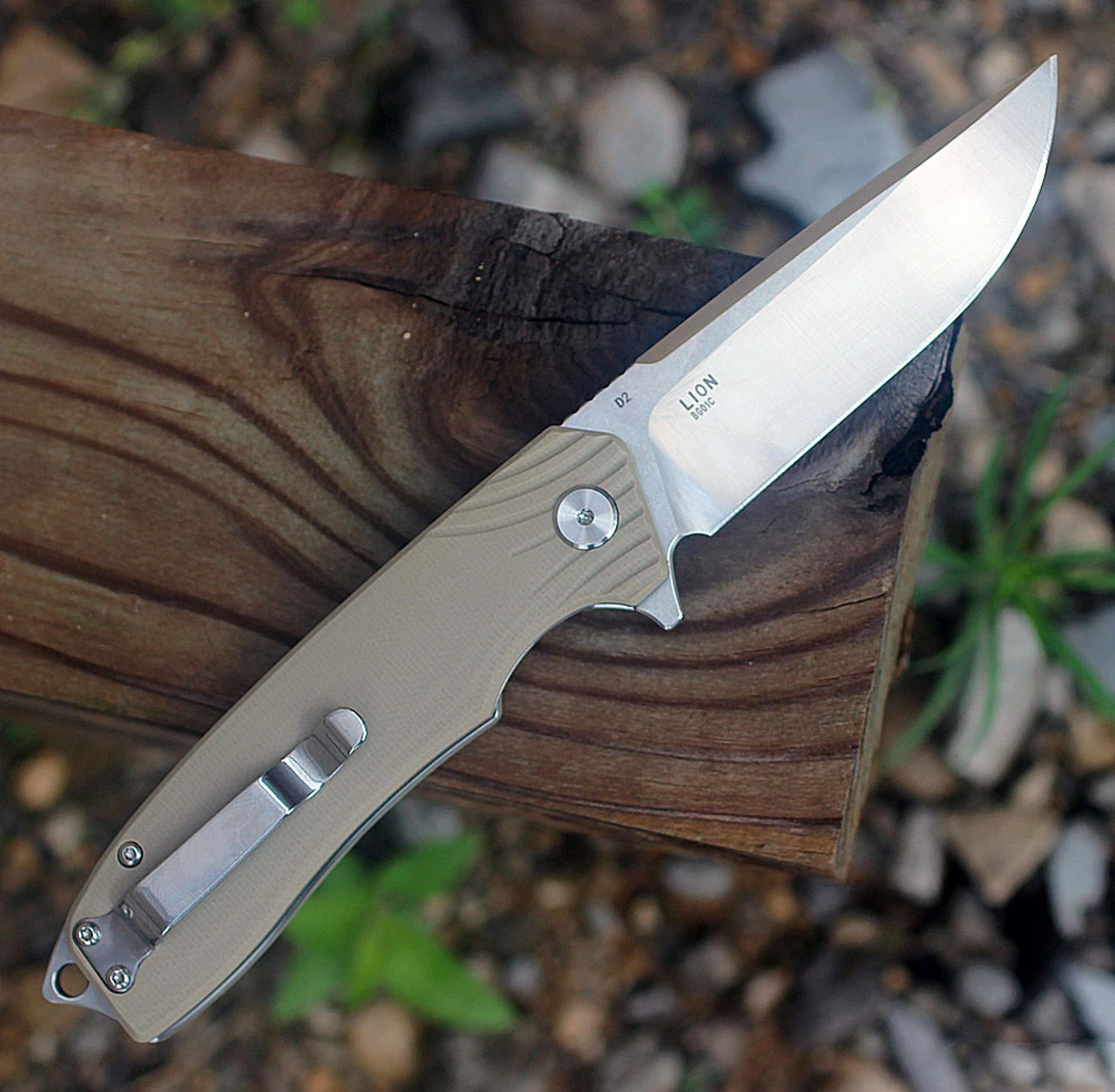 Bestech G01C Lion, 3.5″ D2 Plain Blade, Beige G-10 Handle