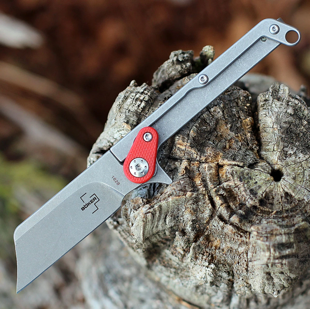 Boker Plus Fragment G-10 Slim Joint (01BO661) – 1.97″ 440C Stonewashed Modified Sheepsfoot Blade, Red G-10Â Minimalist Bar