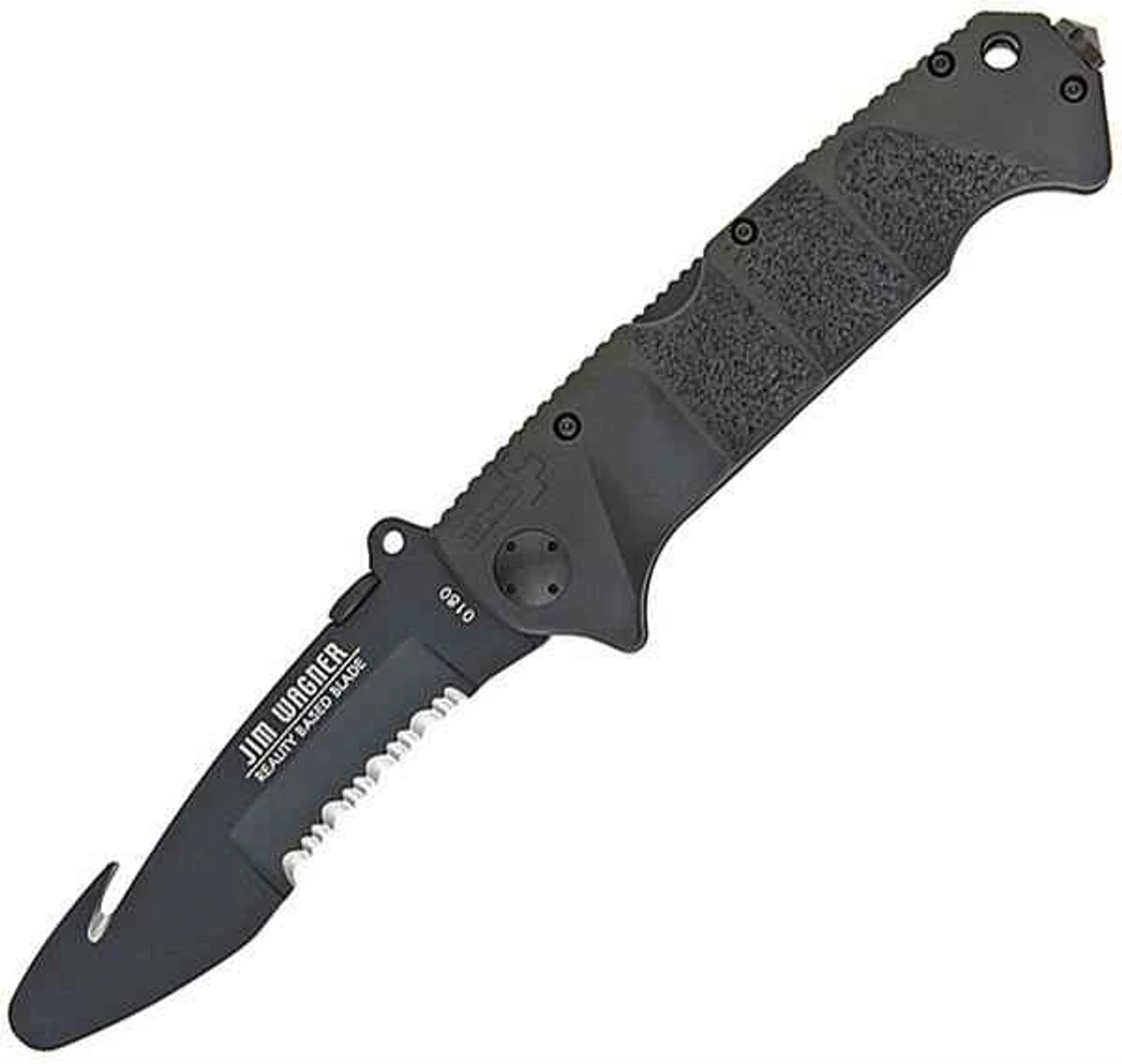 Reality – Based Rescue. Rather than integrating the seatbelt cutter into the handle, they decided to incorporate it into the blade.The rounded tip gives more secrity when it’s needed most. The serrated 440C stainless steel blade cuts through rope efforthlessly, and has superior edge retention.