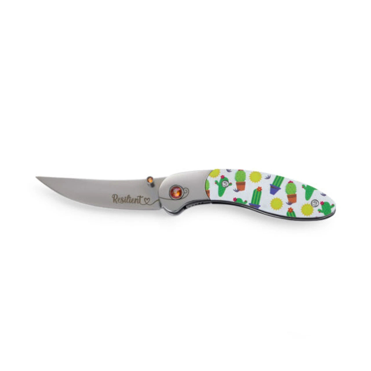 Brighten Blades Resilient Folding Knife (BB006) 2.56 in Mirror 8Cr13MoV Drop Point Blade w/ “Resilient” Blade Etching, Full-Color Cactus Print Handle