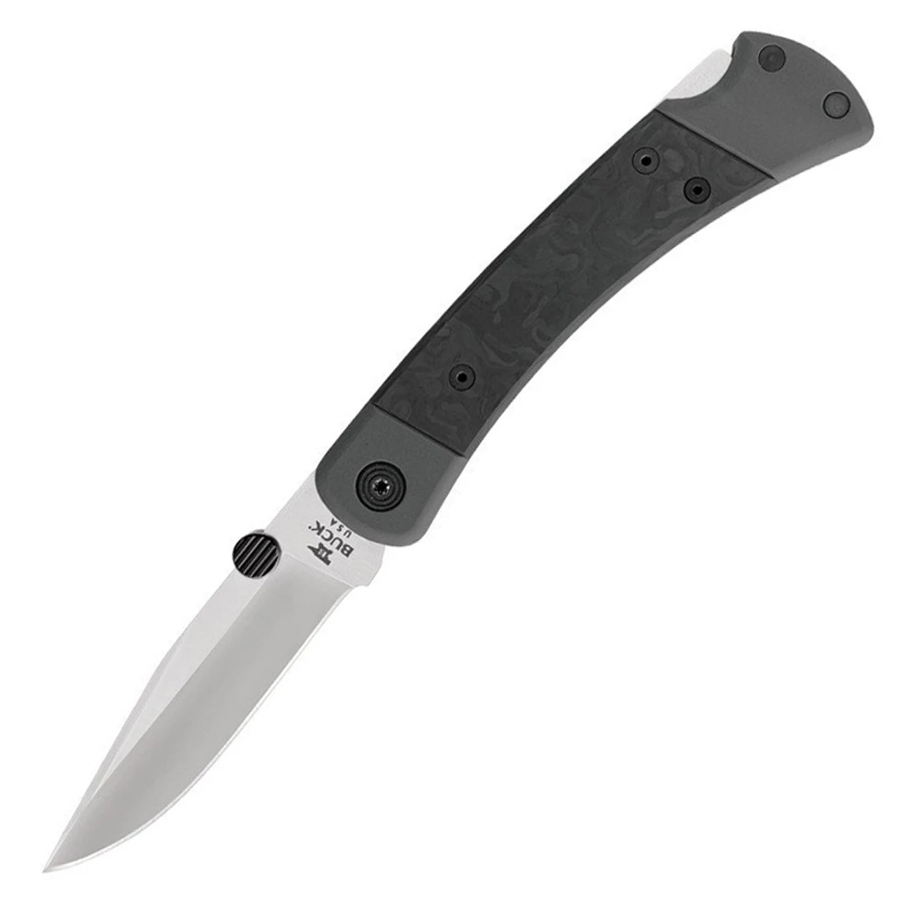 Buck 110 Folding Hunter 0110CFSLE1- 2021 Legacy Collection, 3.75″ S45VN Cerakote Coated Plain Blade, Marble Carbon Fiber w/Gray Aluminum Handlee