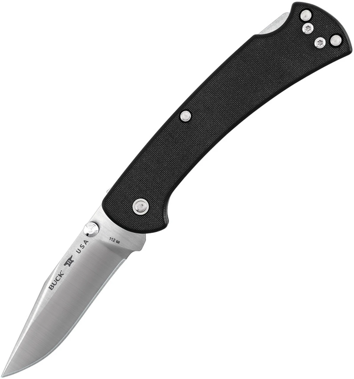 BUCK 112 SLIM PRO LOCKBACK, 3″ SATIN S30V SS BLADE, BLACK MICARTA HANDLE