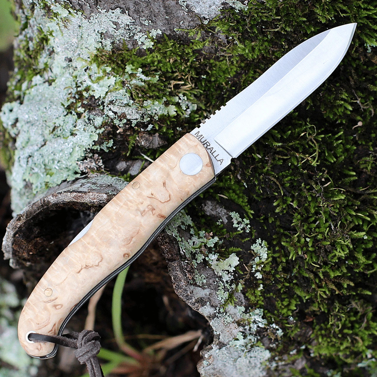 Castillo Knives Muralla Folding Lockback, C2CUB, 3.5″ Sandvik 14C28N Plain Blade, Curly Birch Wood Handle