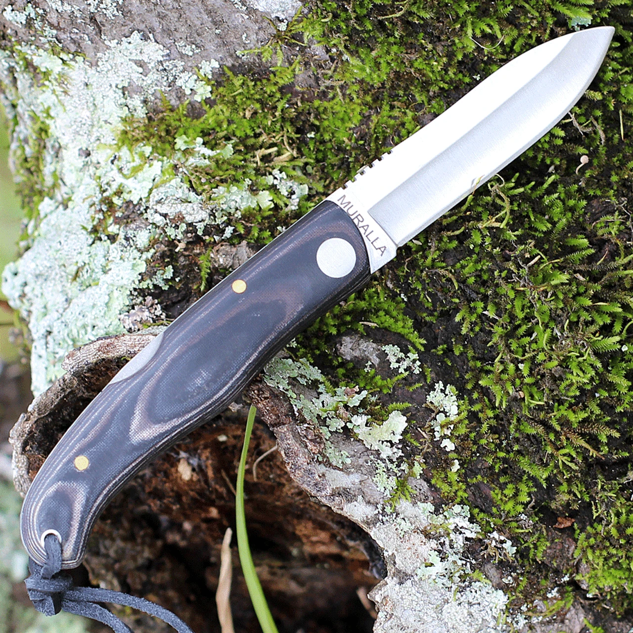 Muralla means “rampart” which are the defensive walls that surround a castle. This crucial fortification element is what inspired the jimping on the spine of this modified spear point blade. The Muralla is a stout everyday knife which feels great in-hand and is easily controllable. The Muralla features a 2.875″ Sandvik 14C28N stainless steel modified spear point blade and bocote wood handles. It is designed to be opened with two hands and has a solid lockback mechanism. The Muralla comes complete with a leather lanyard and brown leather sheath.