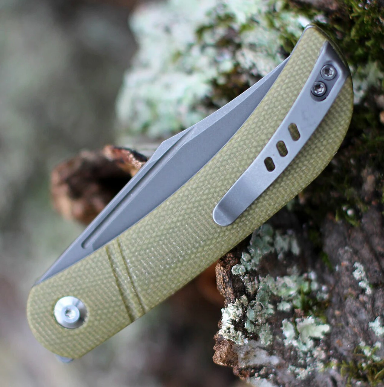 - Olive micarta handle.