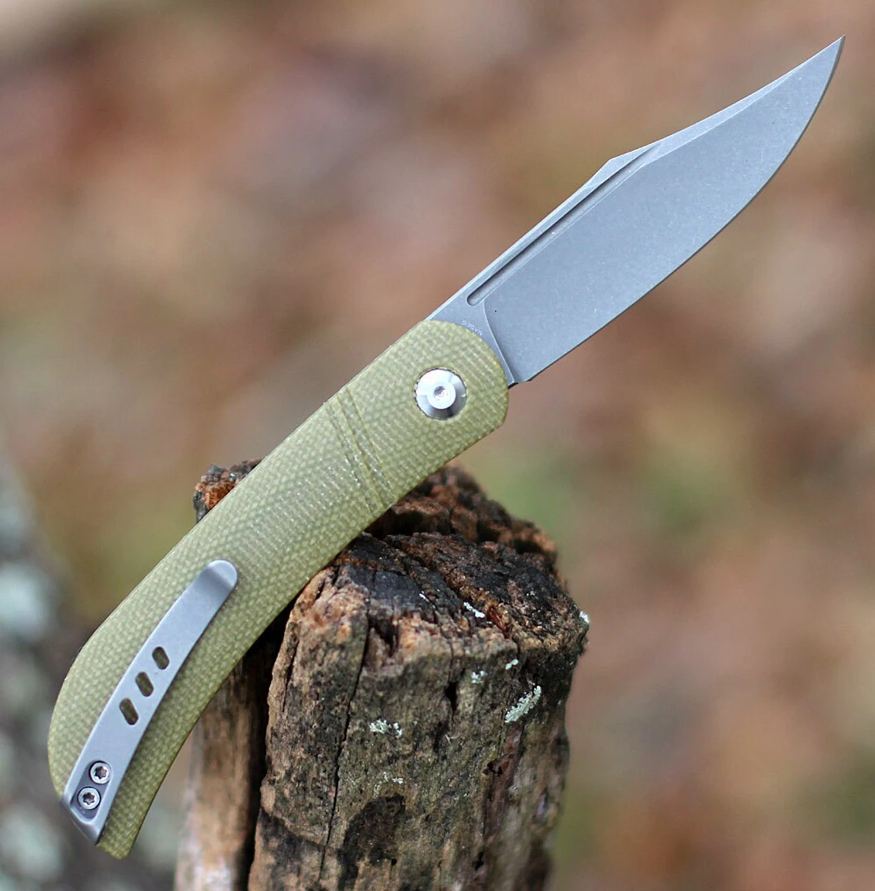 CIVIVI Appalachian Drifter Folding Knife (C2015B)- 2.96″ Stonewash CPM-S35VN Clip Point Blade, Olive Micarta Handle