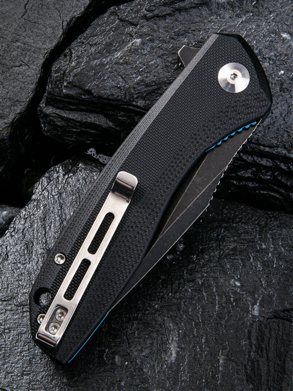 - Blackwash finished 9Cr18MoV stainless steel blade.