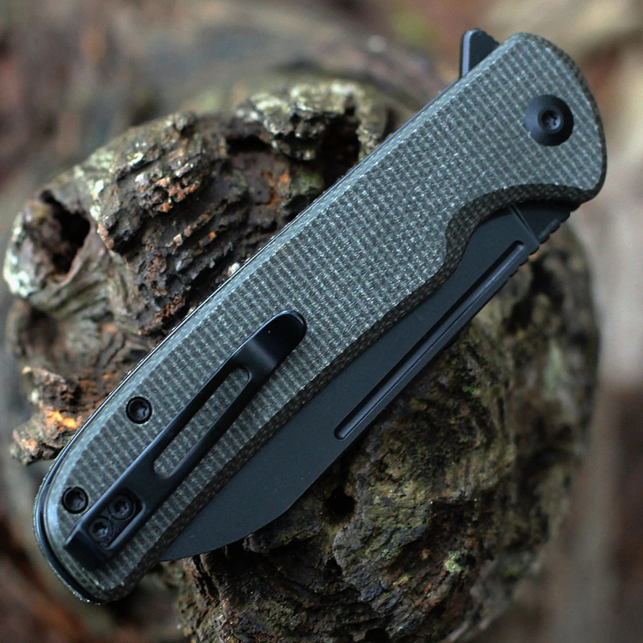 CIVIVI Chevalier Folding Knife (C20022-2)-3.46″ Stonewash 14C28N Sheepsfoot Blade, Green Micarta Handle