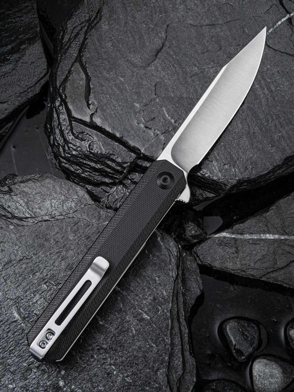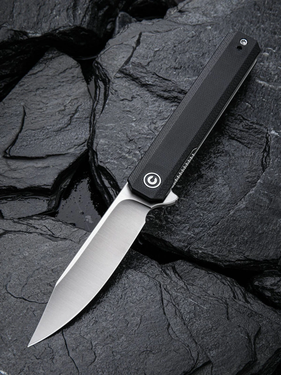CIVIVI Chronic Folding Knife (C917C)- 3.22″ Satin 9Cr18MoV Clip Point Blade, Black G-10 Handles