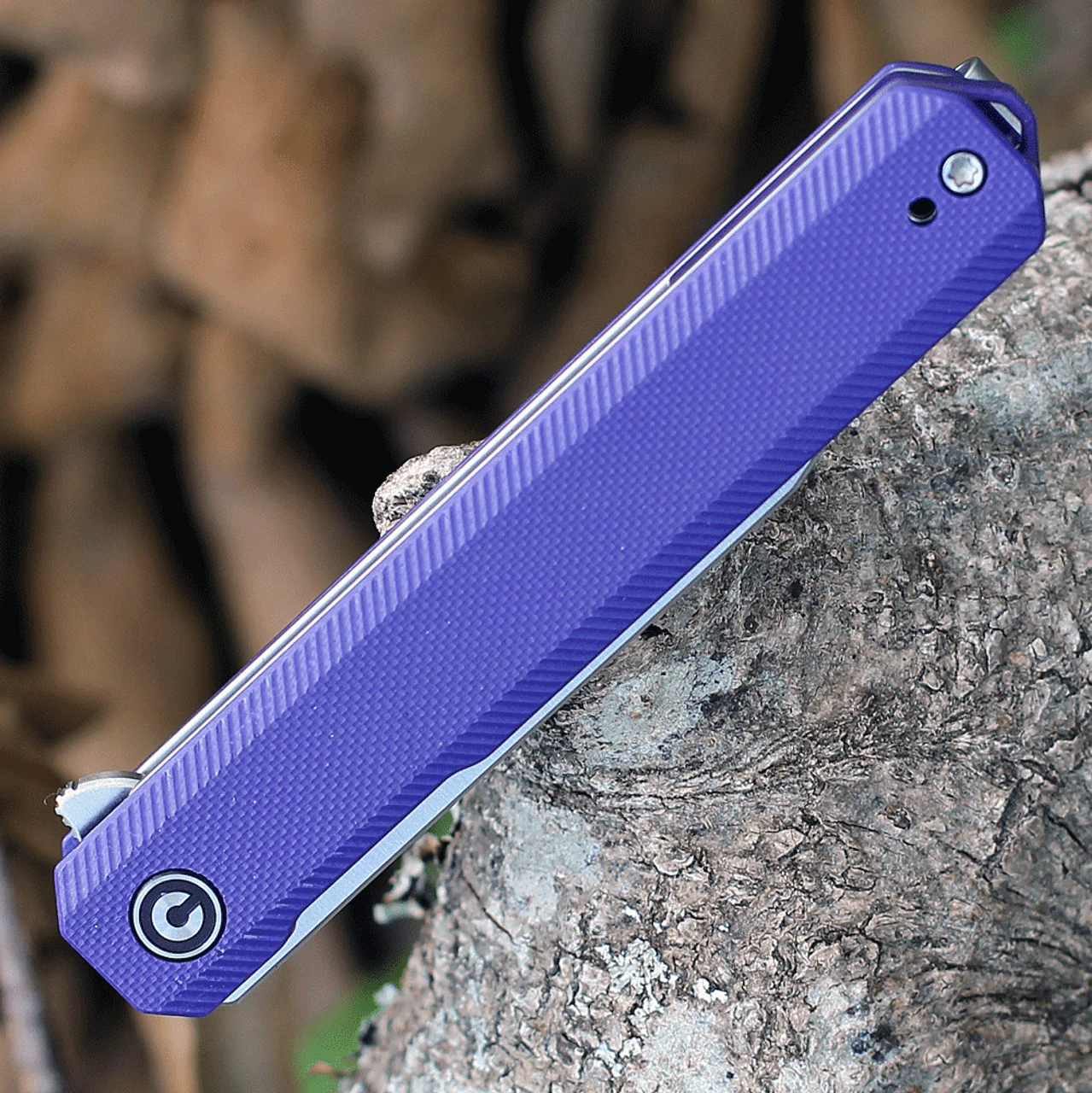 CIVIVI Chronic Folding Knife (C917D)- 3.22″ Satin 9Cr18MoV Clip Point Blade, Purple G-10 Handles