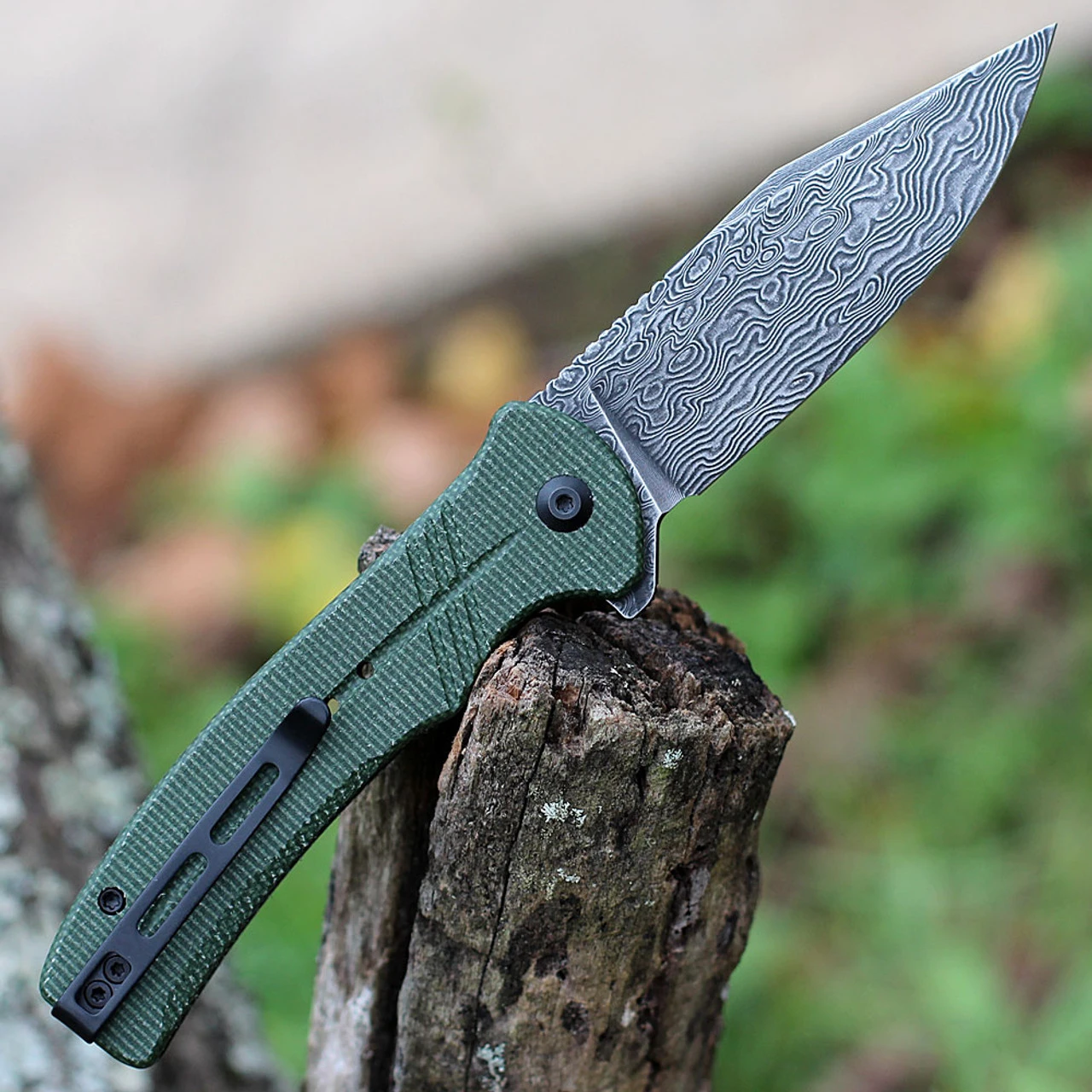 CIVIVI Cogent Folding Knife (C20038D-DS1)- 3.47″ Damascus Clip Point Blade, Green Micarta Handle