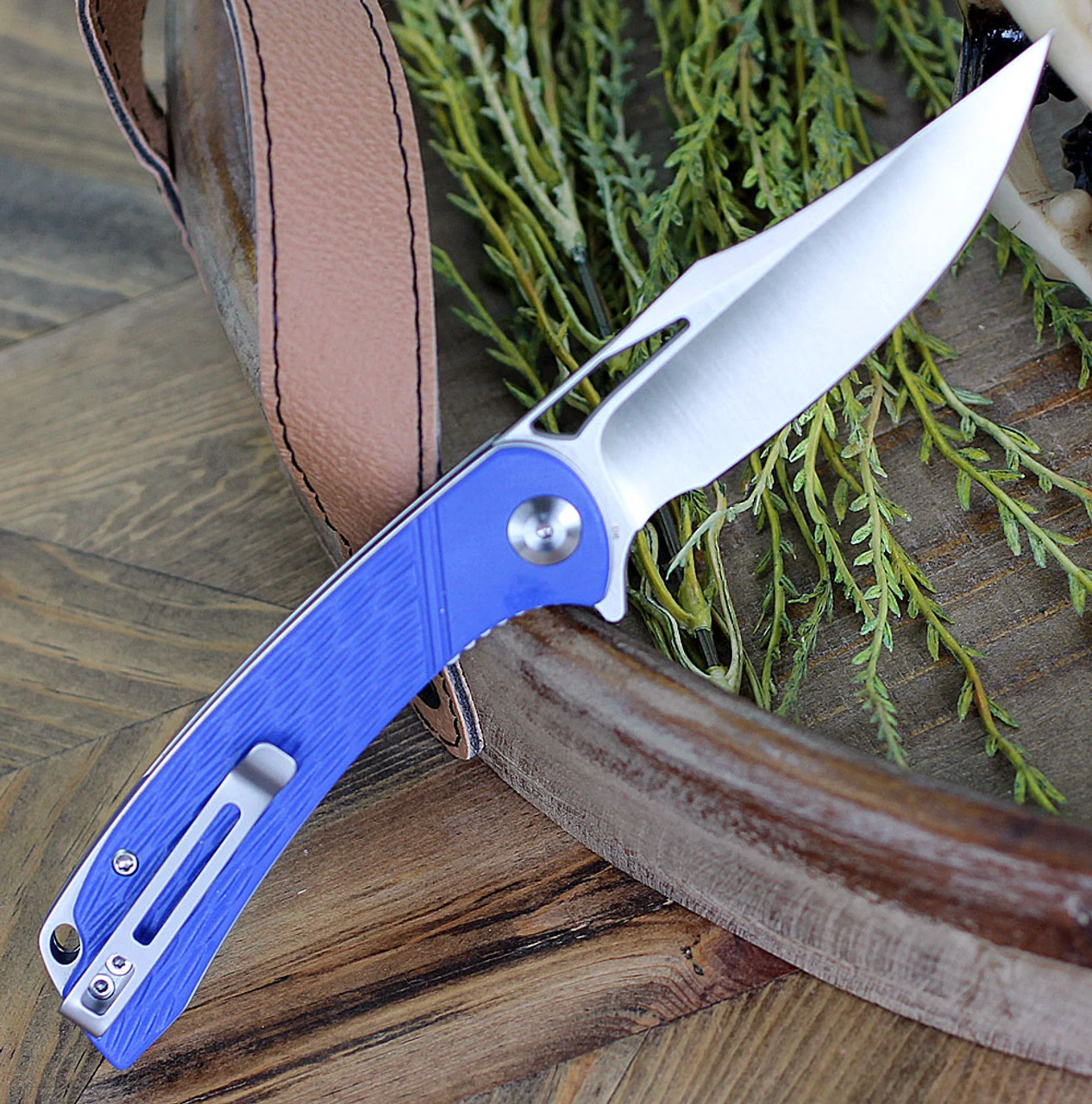 CIVIVI Dogma Folding Knife (C2005C)- 3.46″ Satin D2 Clip Point Blade, Blue G-10 Handle