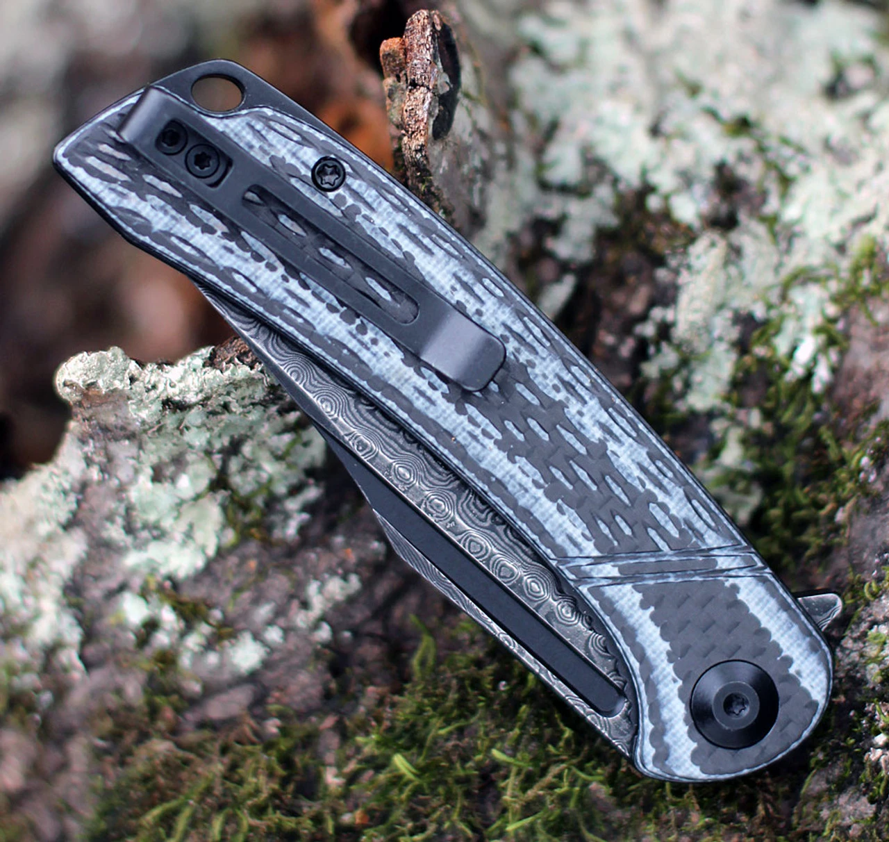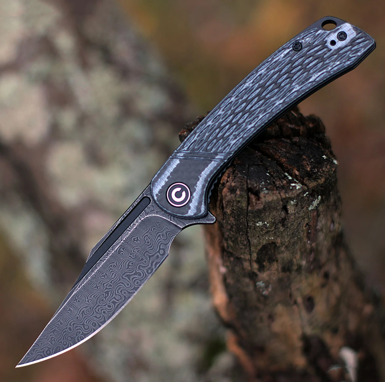 CIVIVI Dogma Folding Knife (C2014DS-1)- 3.46″ Damascus Clip Point Blade, White G-10 and Carbon Fiber Handle