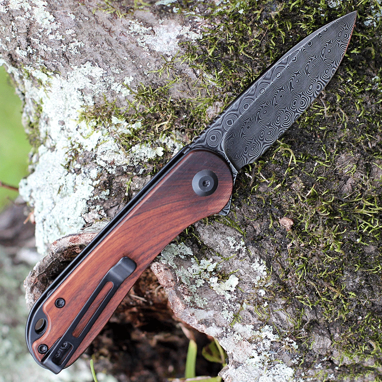 CIVIVI Elementum Folding Knife (C907DS-1)- 2.96″ Damascus Drop Point Blade, Cuibourtia Wood Handles