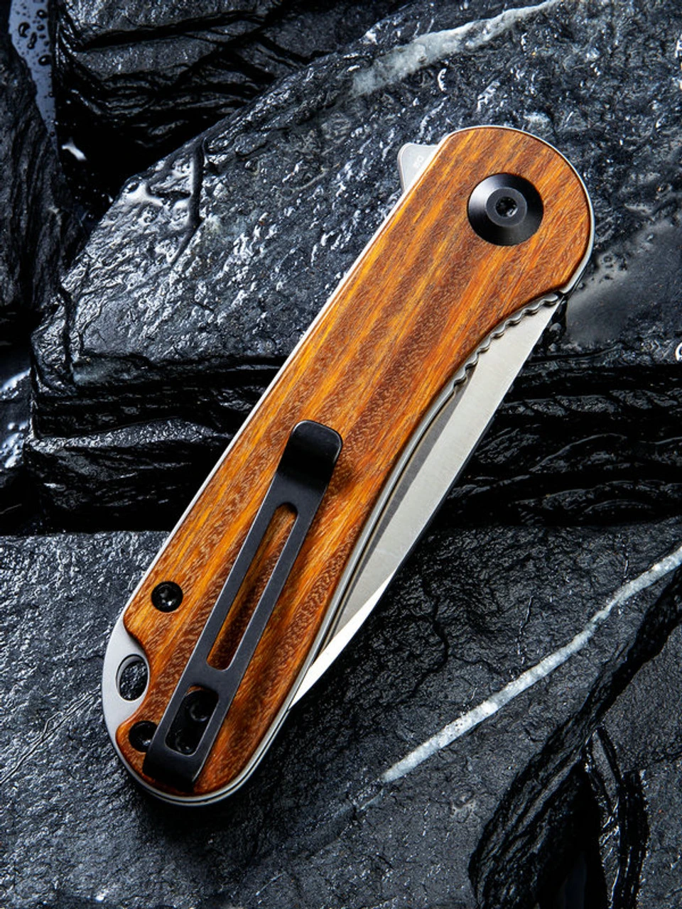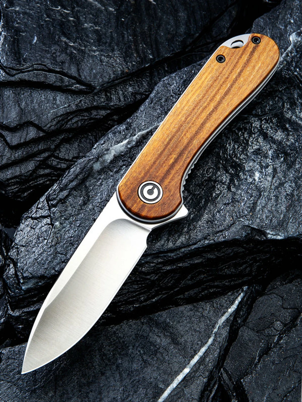 CIVIVI Elementum Folding Knife (C907C)- 2.96″ Satin D2 Drop Point Blade, Rose Wood Handles