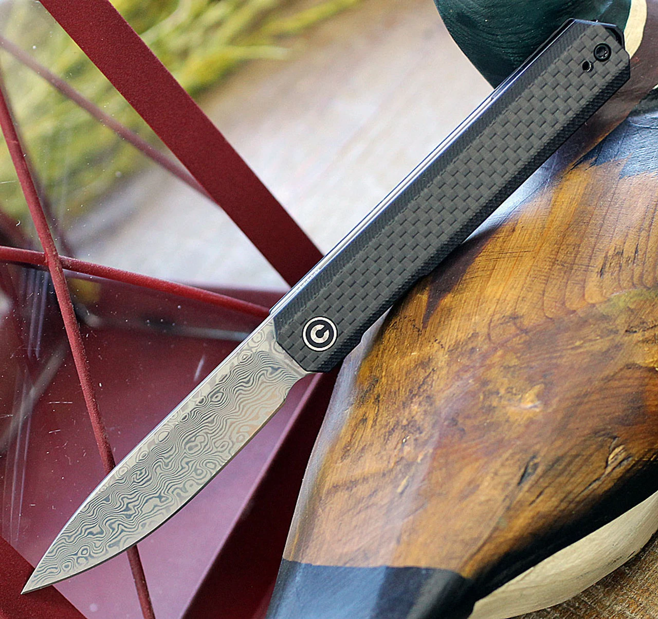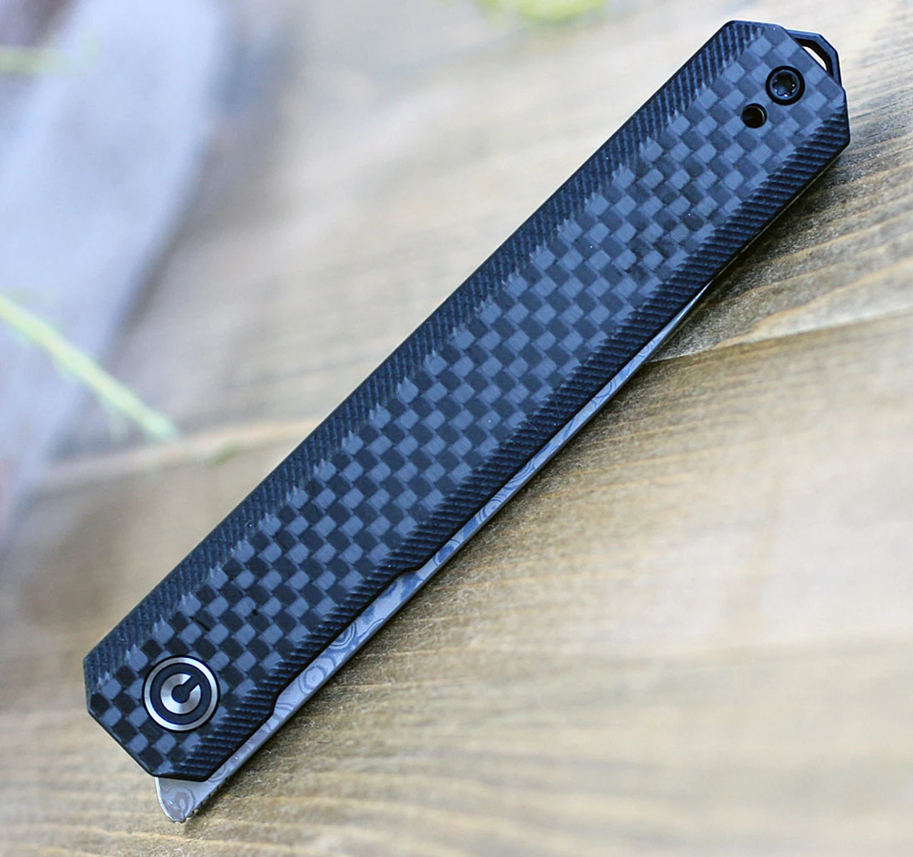 CIVIVI Exarch Folding Knife (C2003DS-1)- 3.22″ Damascus Drop Point Blade, Black G-10 and Twill Carbon Fiber Overlay Handles