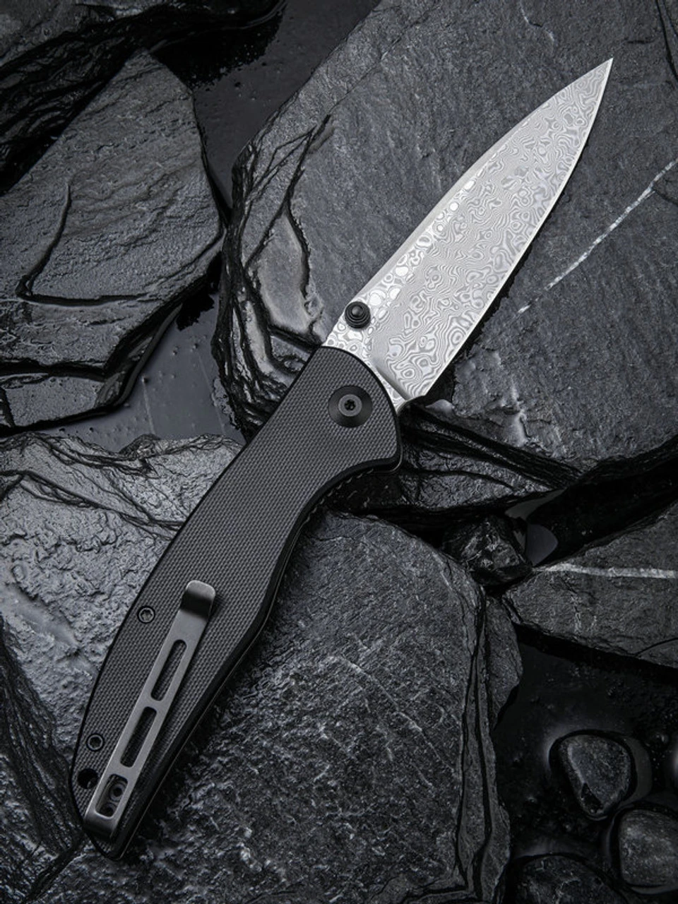 CIVIVI Governor Folding Knife (C911DS)- 3.86″ Damascus Drop Point Blade, Black G-10 Handles
