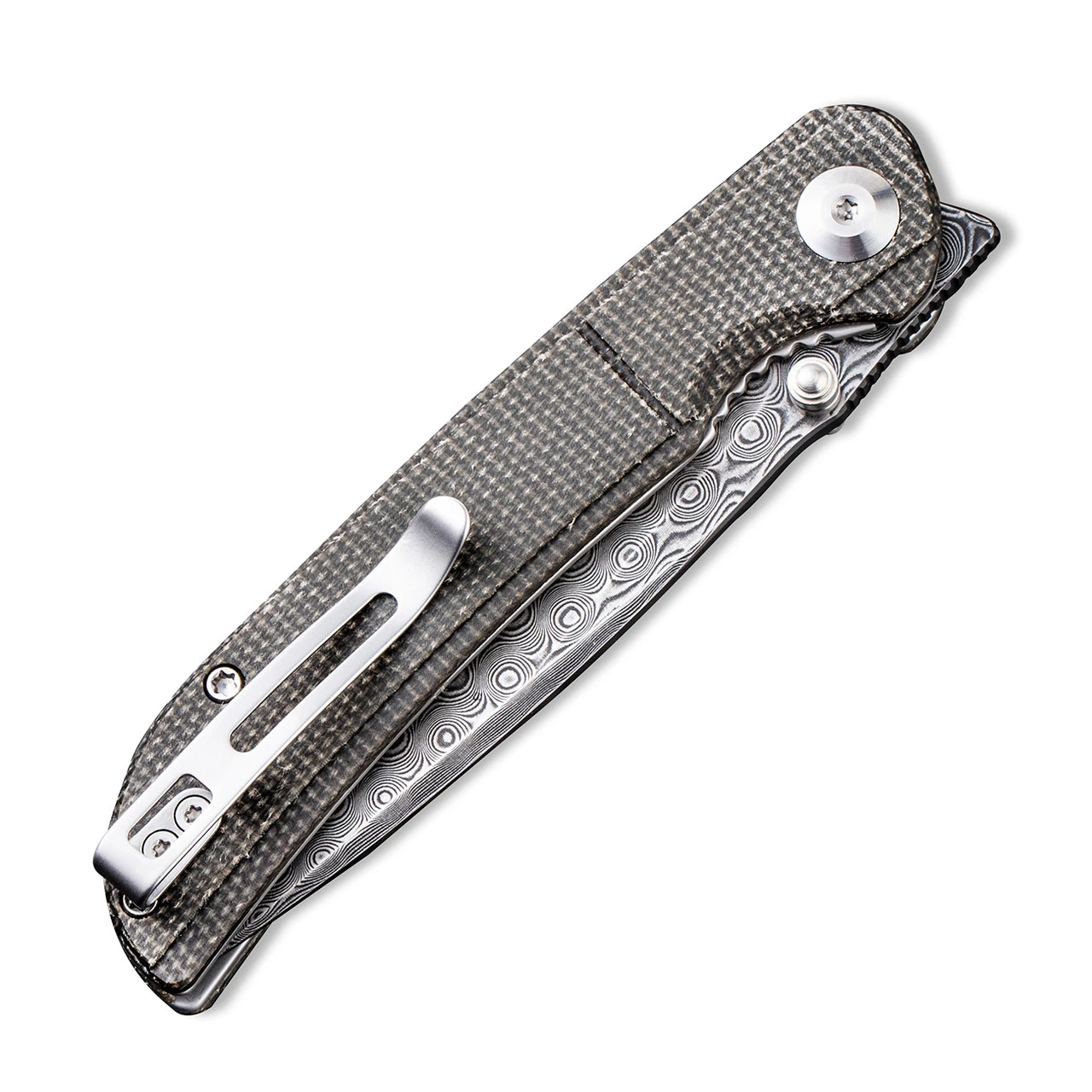 CIVIVI Imperium Flipper (C2107DS-3)-3.47″ Damascus Drop Point Blade, Dark Green Micarta Handle