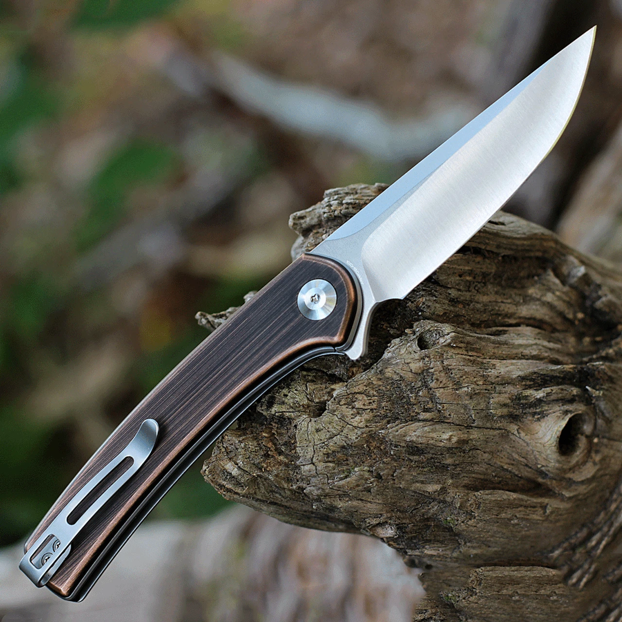 - Black hand rubbed copper handle scales.