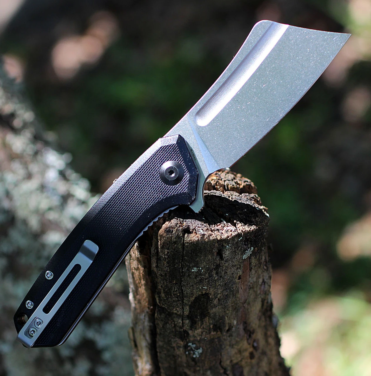 - Stout cleaver style blade makes a statement.