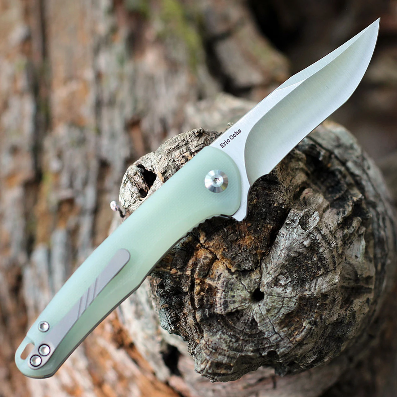 CIVIVI Mini Sandbar Folding Knife (C20011-2)-2.95″ Satin Nito-V Clip Point Blade, Jade G-10 Handle