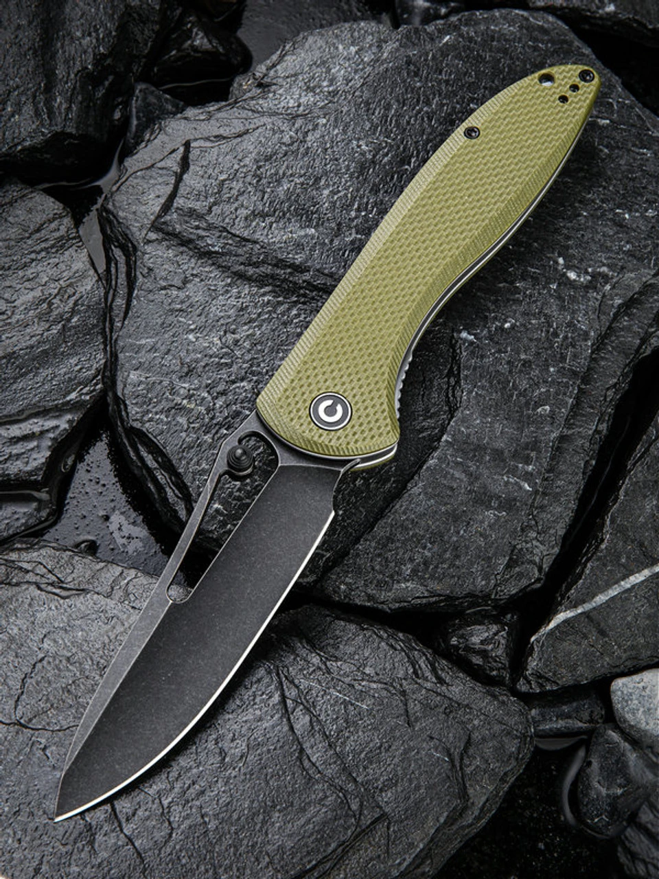 CIVIVI Picaro Folding Knife (C916A)- 3.94″ Blackwashed D2 Drop Point Blade, OD Green G-10 Handles