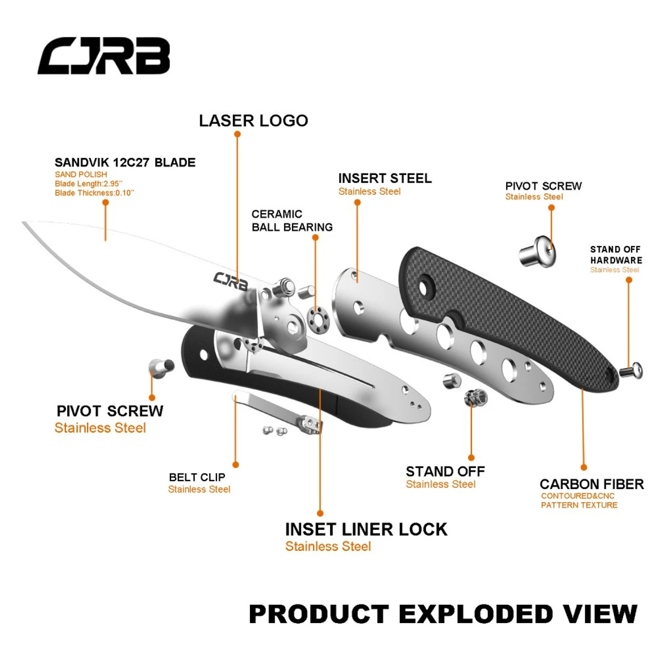 CJRB Cutlery RIA J1917-CF, 2.95″ 12C27 Sand Polish Plain Blade, Carbon Fiber G-10 Handle
