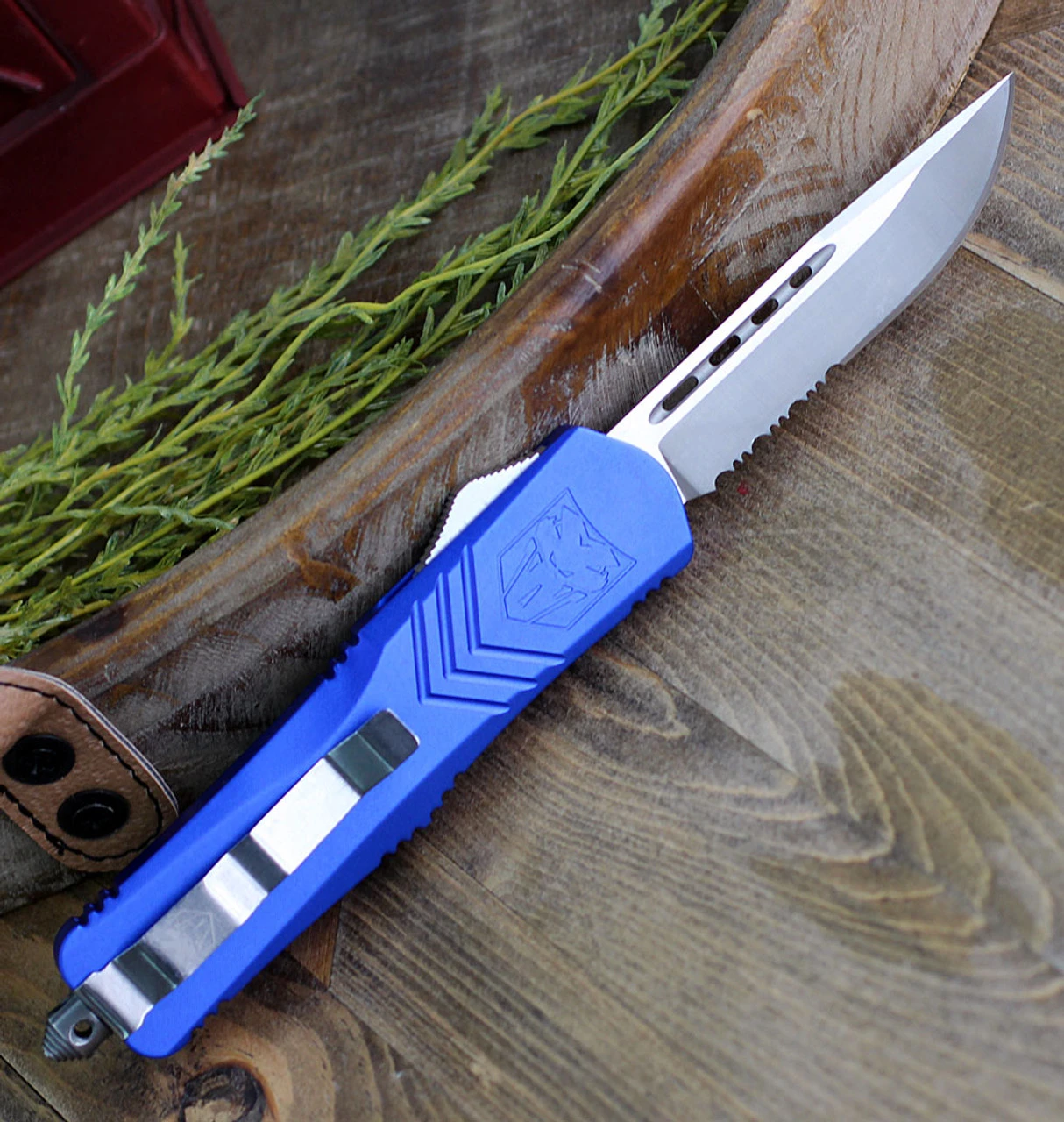 CobraTec Blue FS-X OTF Knife CTKLBLUFS-XLDS, 3.75″ D2 Steel Drop Point Serrated Blade, Blue Aluminum Handle