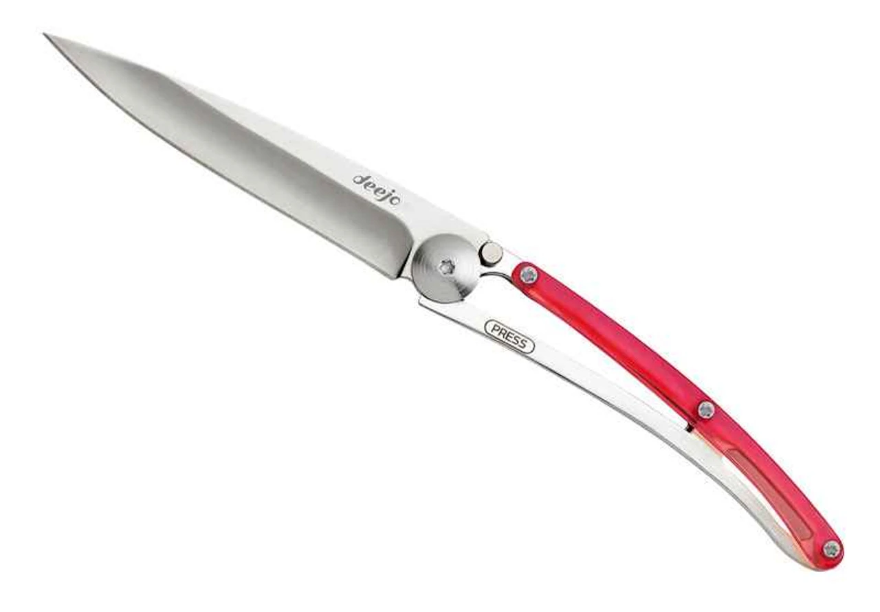 Deejo DEE9AP006 Colors 27g, 3.12″ 420 SS Plain Blade Blade, Red Polycarbonate Handle
