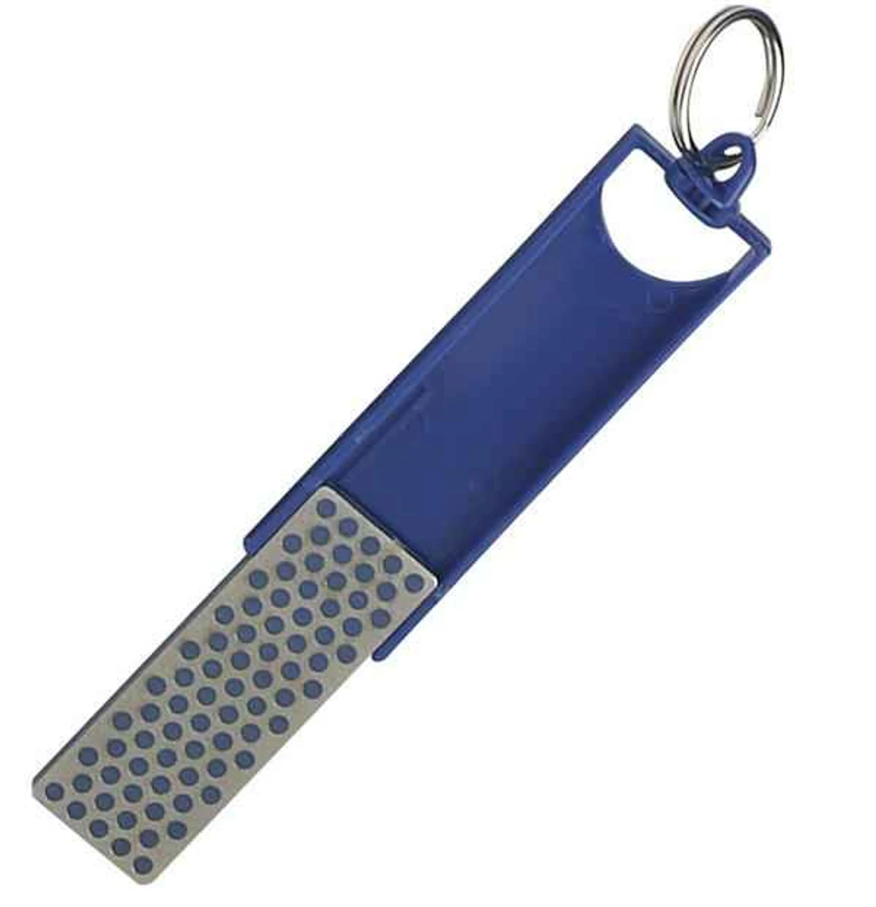 Diamond Mini-Sharp Sharpener – a Diamond Whetstone that travels with you. Folding handle protects the stone when not in use. Lightweight and ultra portable, handy key chain swivel ring for your keys or attach to zipper pulls or backpacks. Coarse diamond (45 micron / 325 mesh) to quickly restore a neglected edge. Handy Size: 5 .5 opened. Size: 2 11/16″ x 15/16″ x 3/16″. Sharpening with diamonds is fast and easy. No messy oils neededsharpen dry or with water. Durable construction will provide years of consistent performance and reliable service For proper tool maintenance, woodworkers, chefs and other professionals rely on the superior quality and versatility of DMT products. Made in USA.