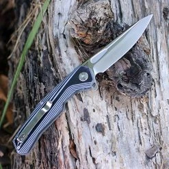 Artisan Cutlery Artisan Zumwalt ATZ1808PBGC, 3.94″ D2 Plain Blade, Curved Black/White G-10 Handle