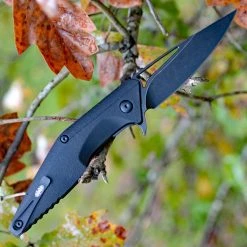 Brous Blades Strife Folder Stonewash Finish D2 Tool Steel, Black Carbon Fiber Handles